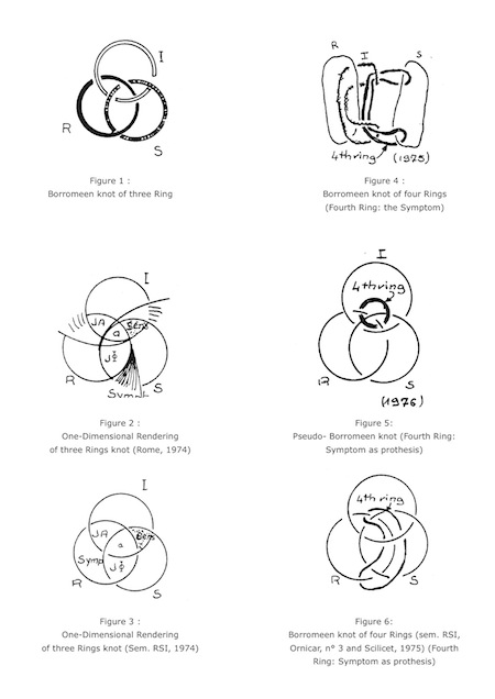 Боромеевият възел се състои от поне три пръстена. А тези пръстени са топологии: три тороида, или три нишки. Те са така вплетени една с друга,че ако една се прекъсне, възелът се разпада. Смисълът, това е функция на две от нишките – въображаемата и символната. Но две нишки са недостатъчни; стабилността, тоест устойчивостта, изисква поне три нишки! Така както барионът изисква три кварки, за да не изчезне2, така религията се съставлява от три съставности; да имаш възел от три е да имаш вече религиозност. Ето така двете явления са неделими едно от друго: това да имаш стабилност, да си явление изобщо, и това да има смисъл. И те са неделими, изглежда, от трето: религия. Въображаемото, символното и реалното, това са съставните части на религията, така както в боромеевия възел има три нишки. И тя, религията, е функция на неволята3, да се покрива – като с гигантски брезент – тегобата от реалното, неизбежността на неговата невъзможност. Реалното, това страховито, това копнено чудо и чудовище, краят на всички неща и неизговоримото. Дупката в смисъла, това е реалното. Финансовият крах, земетресението, влюбването. Кутрето в ръба на леглото, изпуснатата аларма. Загубил ума и дума. Сляпата точка във всяка логическа верига.